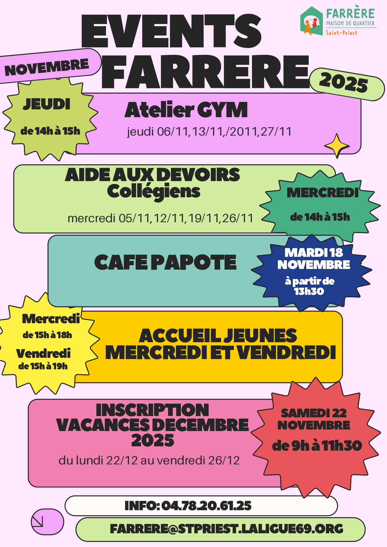 TOUTE INSCRIPTION EST DEFINITIVE et toute inscription à la Maison de Quartier Claude Farrère vaut acceptation du règlement intérieur disponible sur le site internet.