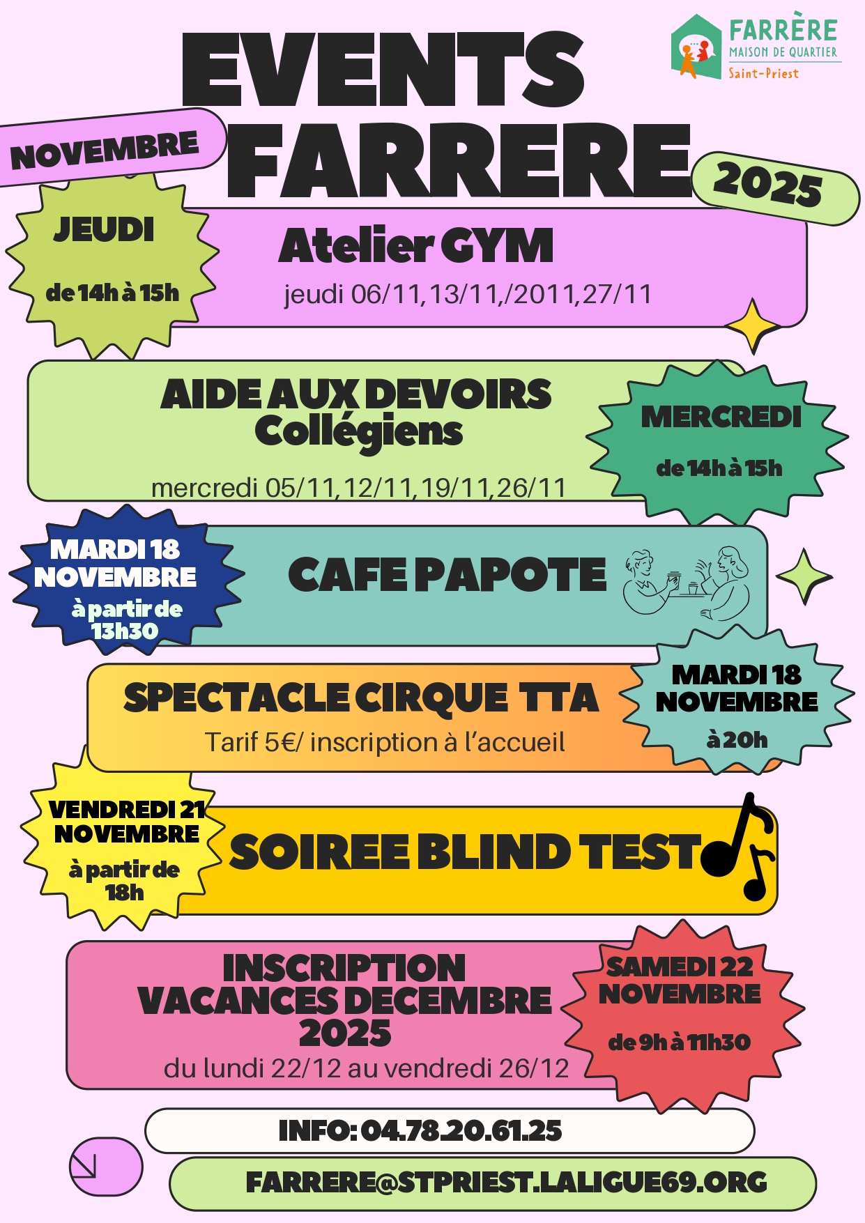 TOUTE INSCRIPTION EST DEFINITIVE et toute inscription à la Maison de Quartier Claude Farrère vaut acceptation du règlement intérieur disponible sur le site internet.