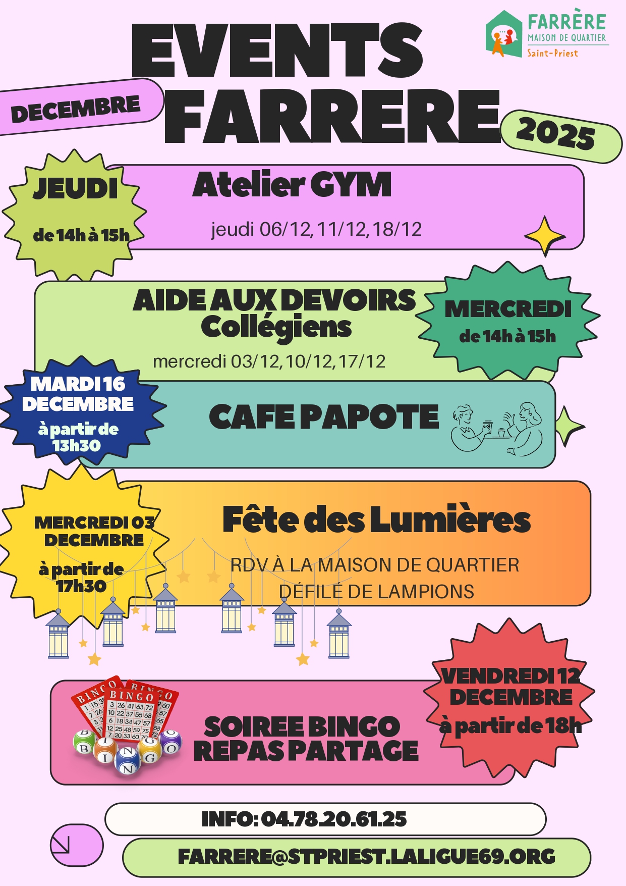 Implantée au cœur de Bel Air, la Maison de Quartier Claude Farrère est un lieu de vies, d’échanges et de rencontres ouvert à tous et pour tous, elle a vocation à accueillir l’ensemble des habitants de Saint-Priest dans un esprit d’ouverture, de dialogue et d’un vivre ensemble commun.